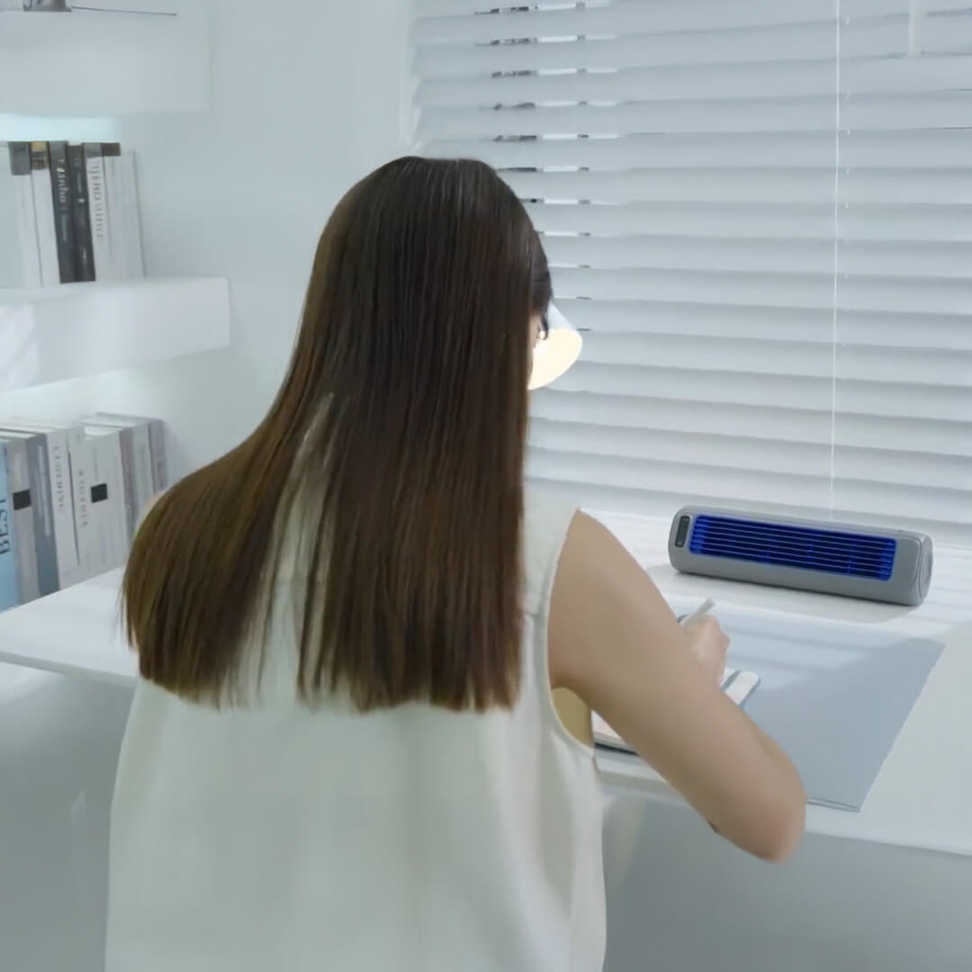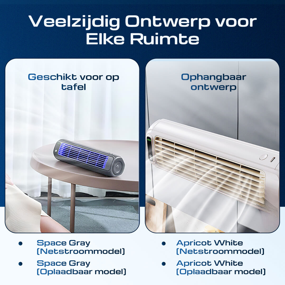 Ideaal voor je bureau, nachtkastje of zelfs aan de muur. Geniet van frisse lucht, zonder het gedoe van traditionele apparaten.