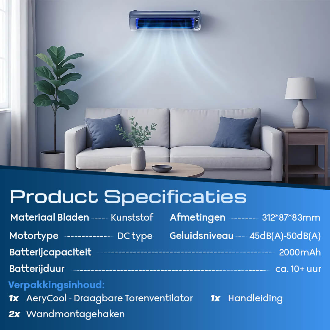 Dankzij het bladloze ontwerp, krachtige luchtcirculatie en stille werking biedt AeryCool onmiddellijke verlichting van hitte – zonder installatie, zonder hoge energiekosten.