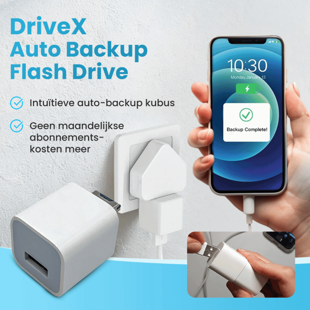 DriveX Auto-Backup Flash Drive – Bescherm Je Data Offline Telkens als Je Oplaadt