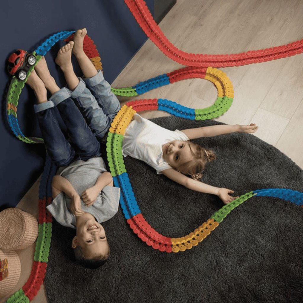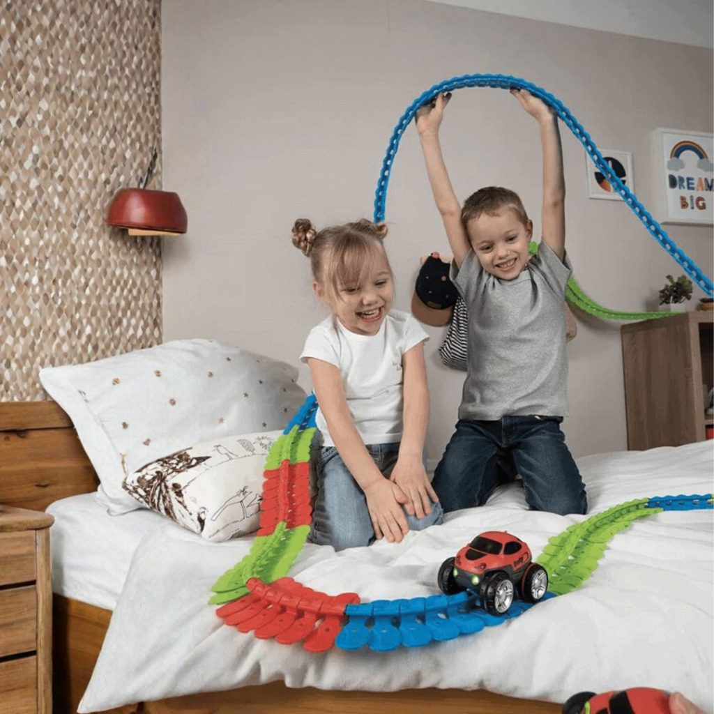 Stel je voor: jouw kind die een racebaan bouwt waar auto’s op z’n kop door bochten knallen — en gewoon blijven plakken. Lachende gezichten, open monden, pure verwondering.