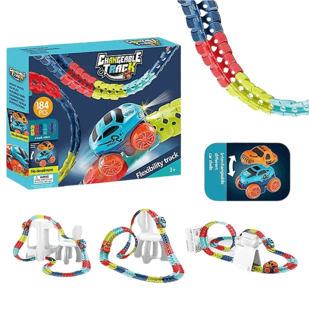 De Flexiride – Flexibele Racebaan is gemaakt van hoogwaardige, duurzame materialen die lang meegaan en bestand zijn tegen vervagen.