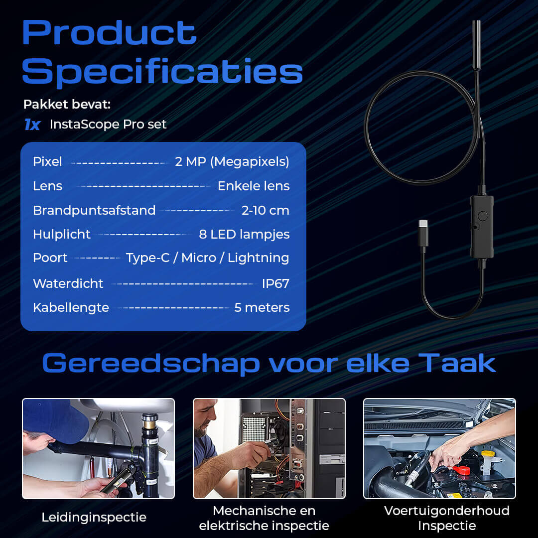 InstaScope Pro Endoscoop – Flexibele Plug & Play Inspectiecamera