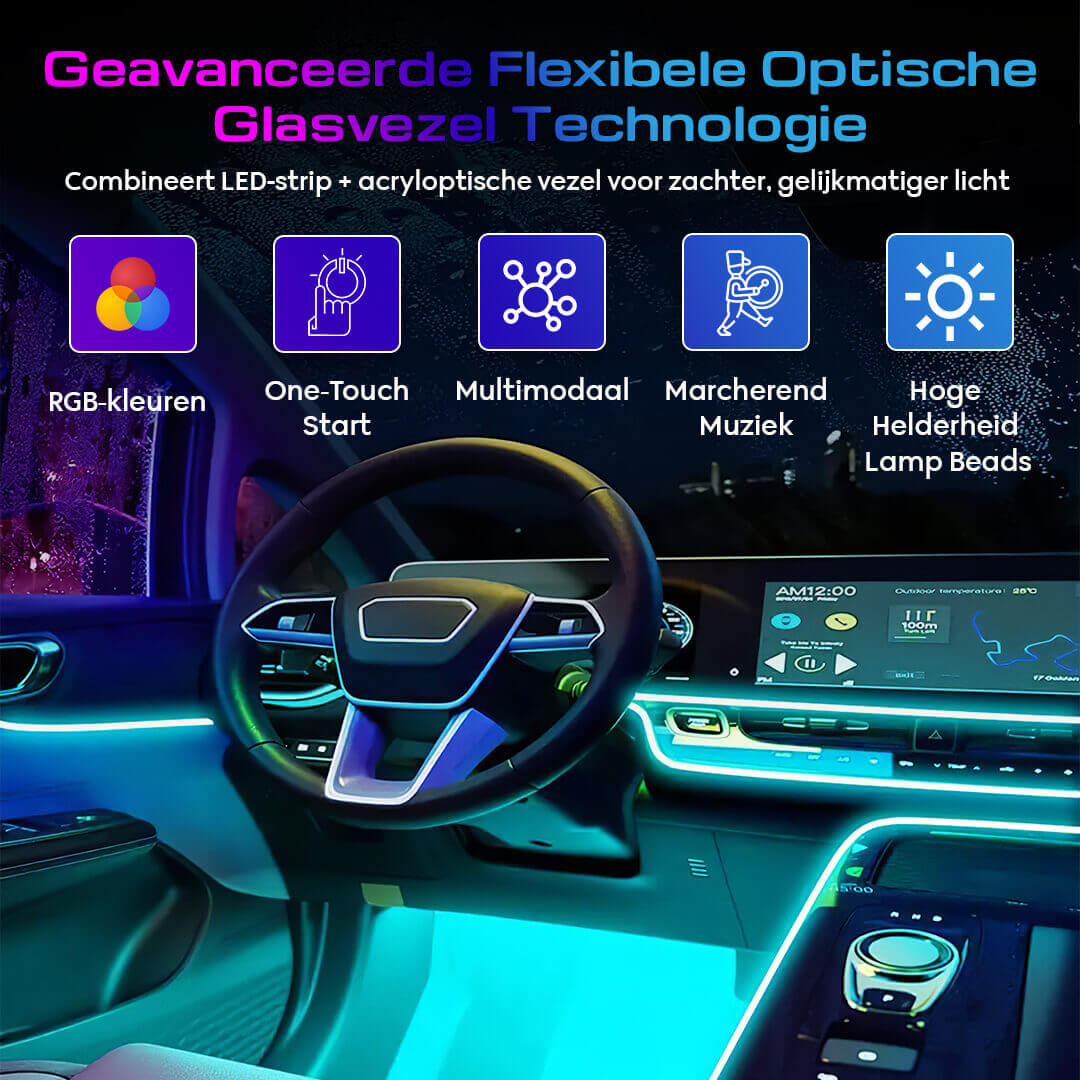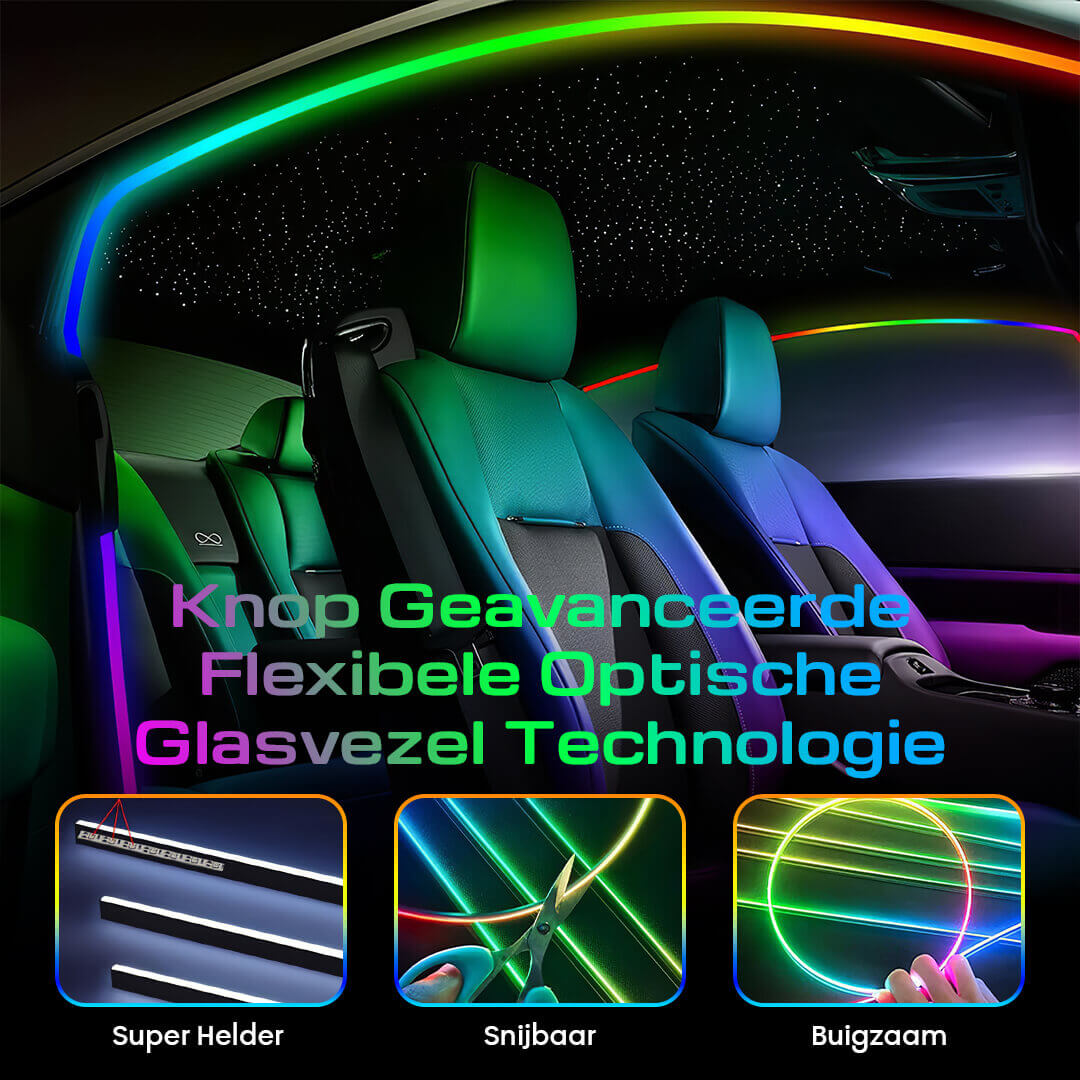 Ervaar hoe jouw auto verandert in een sfeervolle ruimte dankzij de geavanceerde optische glasvezeltechnologie die LED-strips combineert met acrylvezel.