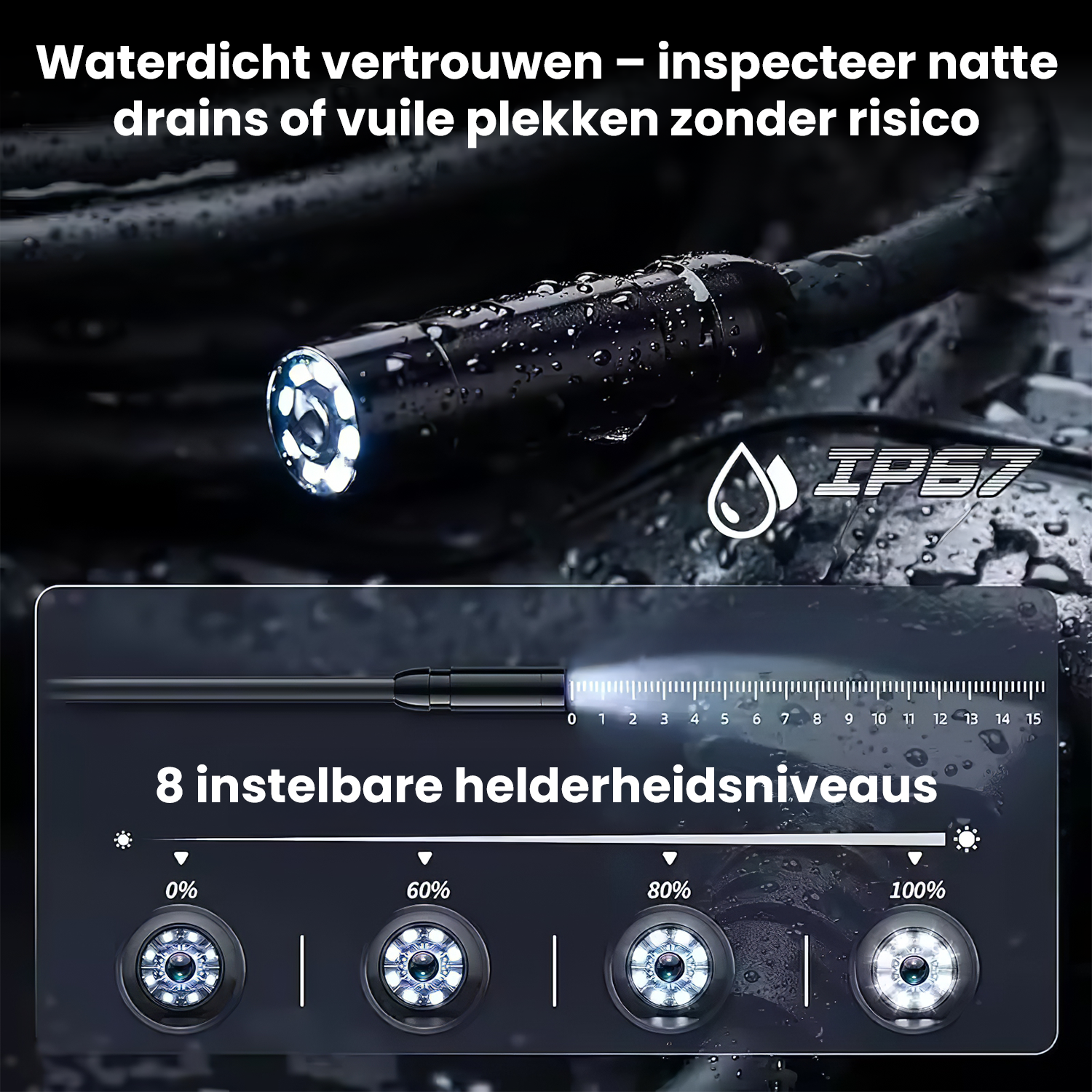 ☑️ Waterdicht vertrouwen – inspecteer natte drains of vuile plekken zonder risico.