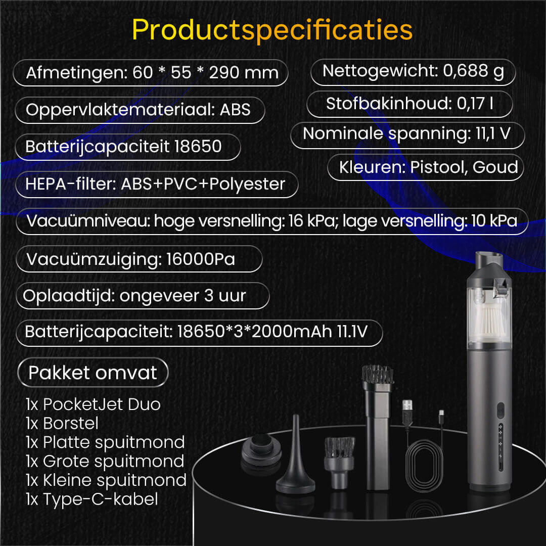 PocketJet Duo – Draagbare 2-in-1 Stofzuiger en Blazer