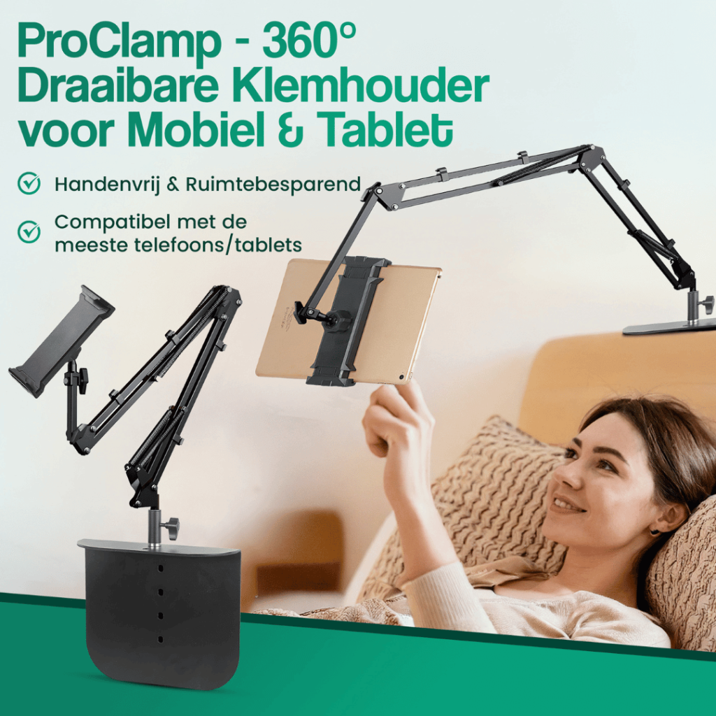 ProClamp – 360° Draaibare Klemhouder voor Mobiel & Tablet