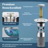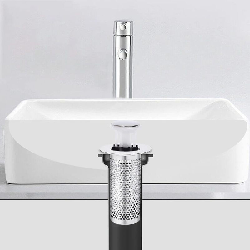 Het slimme pop-up ontwerp met ingebouwd mandfilter vangt vuil en haren direct op, voordat ze je afvoer blokkeren.