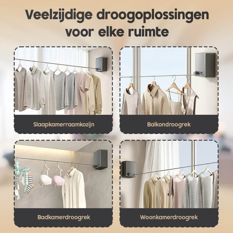 Droog je kleding onzichtbaar, ruimtebesparend en veilig in elk huis