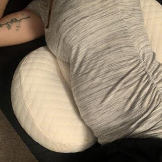 Leg MamaLina naast je op het bed met de helling onder je buik. Geen installatie, geen instructies nodig – gewoon neerleggen en klaar.