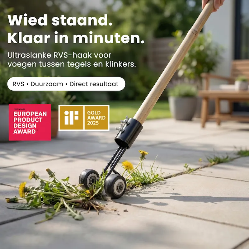 CLAIM NU –50% KORTINGJe zet de haak tussen de tegels, trekt het onkruid los en loopt verder. Geen emmers met chemicaliën, geen knielen op de stenen en geen frustratie met kleine tools.